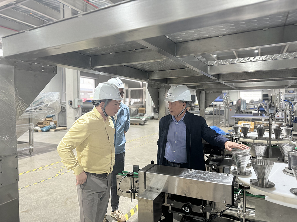 2024年10月16日,中國罐頭工業(yè)協(xié)會理事長劉有千蒞臨上海尼為智能科技有限公司進行考察與指導。在尼為智能董事長張萬寶的陪同下,劉有千理事長深入考察了公司生產(chǎn)線,對尼為智能在罐頭生產(chǎn)線自動化、智能化升級方面的成就表示高度贊賞。