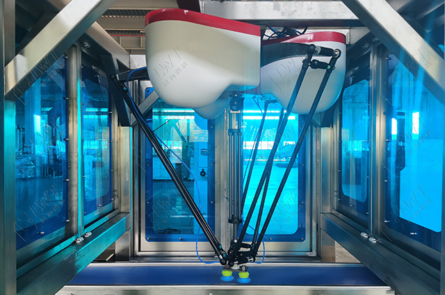 裝箱機(jī)采用并聯(lián)機(jī)器人,具有三維空間 XYZ 平動(dòng)和繞 Z 軸旋轉(zhuǎn)的作業(yè)特點(diǎn),擁有速度快、可靠性高、易用性強(qiáng)、維護(hù)成本低等優(yōu)勢(shì)。
