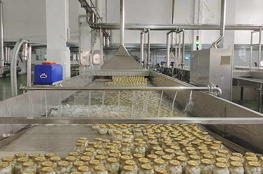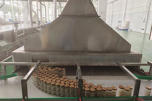 水果罐頭、果醬罐頭常用巴氏滾杠殺菌機(jī)來(lái)滅菌,殺菌槽內(nèi)的熱水溫度控制在85-95℃之間,滾杠可以使產(chǎn)品均勻受熱,起到更好地殺菌效果。殺菌后自動(dòng)再進(jìn)入冷水段使產(chǎn)品降溫,這樣不僅可以給產(chǎn)品護(hù)色,還能保持食物的口感。