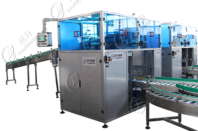 鏈輪式裝箱機(jī)主要工作方式是通過(guò)抓頭抓取設(shè)定好數(shù)量的產(chǎn)品放入箱內(nèi),抓頭有磁力吸取式,適合抓取帶磁力的產(chǎn)品,具有不傷罐的優(yōu)點(diǎn);有真空吸盤(pán)式,這種適用范圍廣,玻璃瓶、馬口鐵罐、塑料瓶等皆適用;有氣囊式,這種適合礦泉水瓶類(lèi)的小直徑產(chǎn)品,氣囊抓頭吸力較強(qiáng),更適合怕有跌落風(fēng)險(xiǎn)的玻璃瓶;還有海綿吸盤(pán)式,這種適合產(chǎn)品表面相對(duì)平整、重量較輕的袋裝產(chǎn)品裝箱。